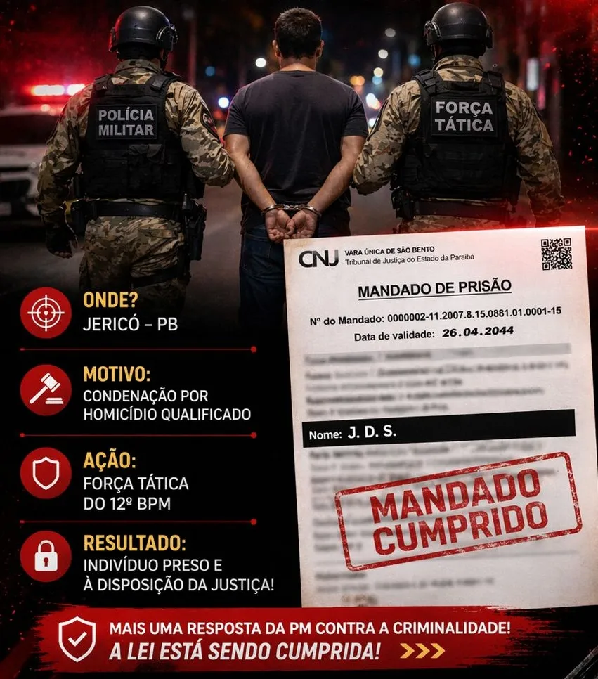 PRISÃO EM JERICÓ Polícia Militar da paraíba, por meio do 12º BPM, cumpre mandado de prisão na cidade de Jericó (PB)