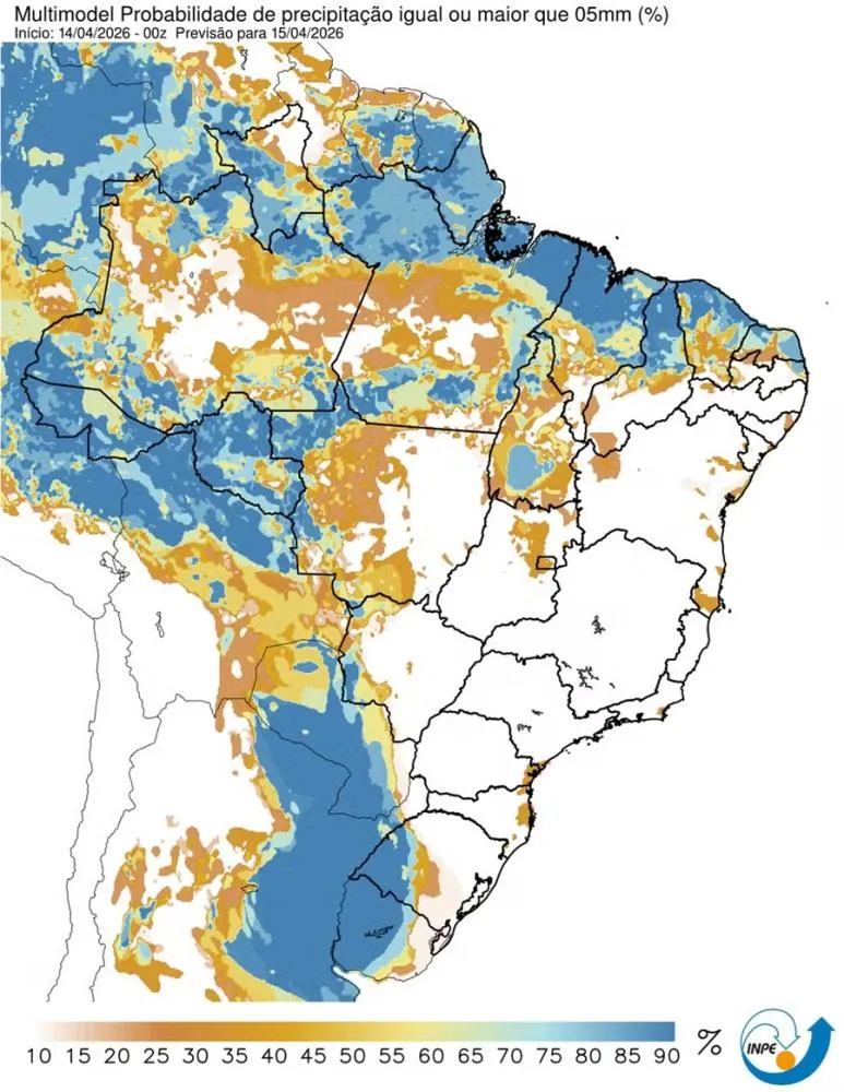 Mas, a partir de meados de junho, a probabilidade de formação do El Niño sobe para 61%, o que pode mudar bastante o padrão de chuvas no país nos meses seguintes.