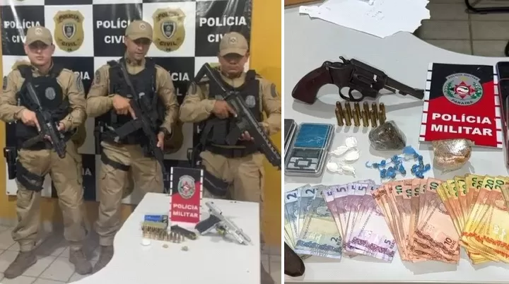 DROGA SÃO BENTO Polícia Militar prende dois suspeitos e apreende drogas, arma de fogo e dinheiro, na cidade de São Bento