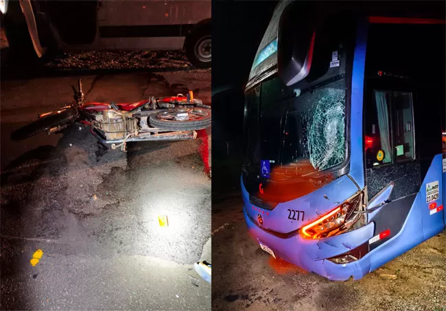 COLISÃO ÔNIBUS-MOTO Ônibus da Guanabara com passagem por Catolé do Rocha colide com moto deixando um morto e outro ferido na RN-117, no Oeste Potiguar